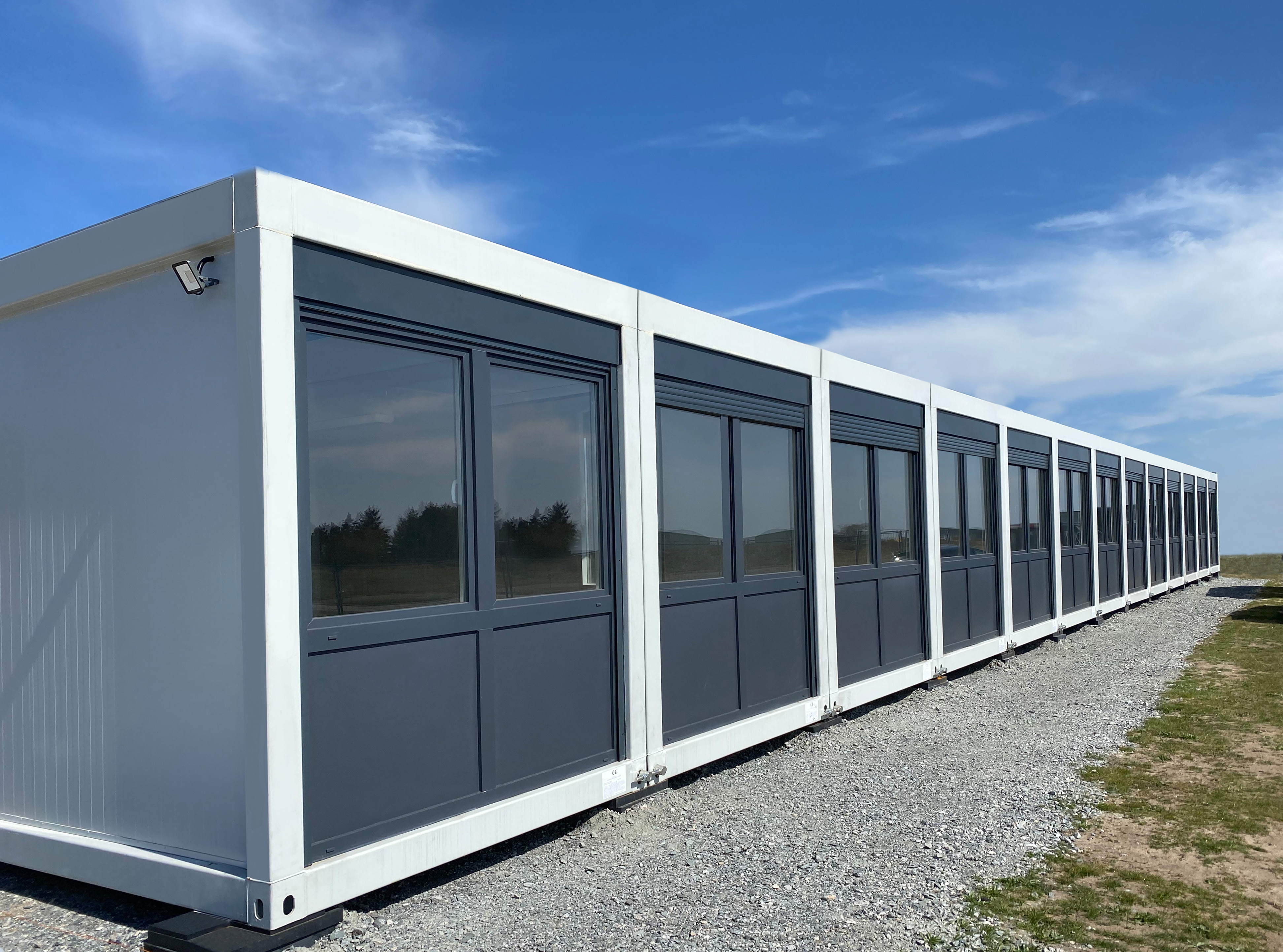 Die Module lassen sich perfekt untereinander und mit bestehenden Gebäuden kombinieren. Wir bieten die Module mit PIR als auch Mineralwollisolierung an.